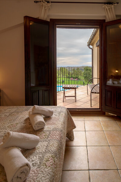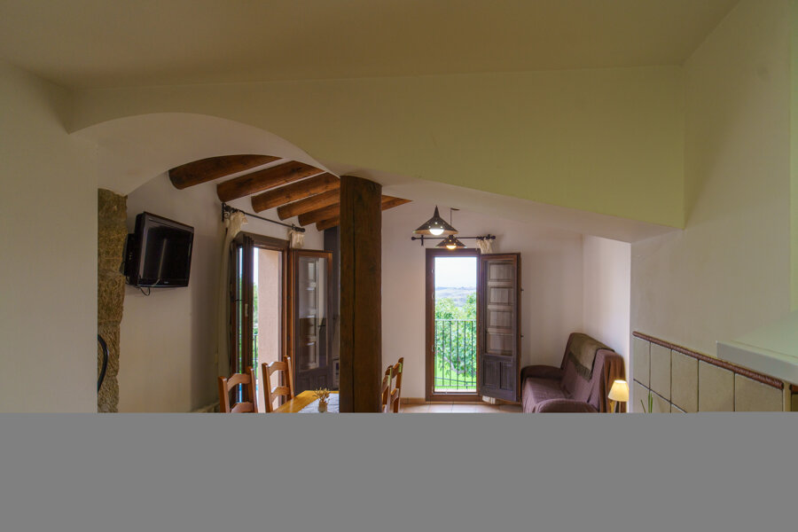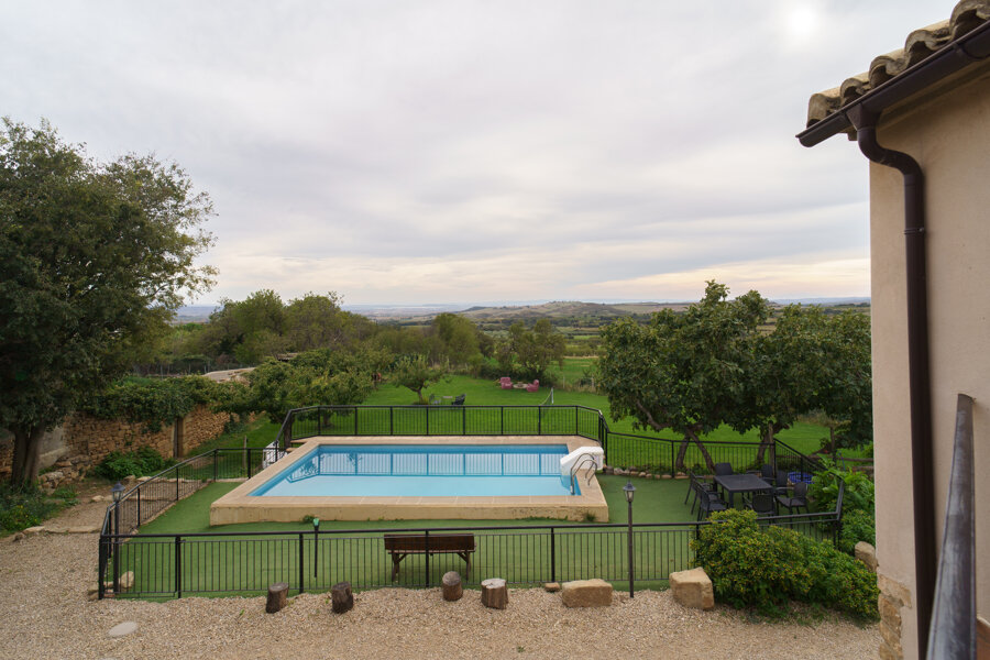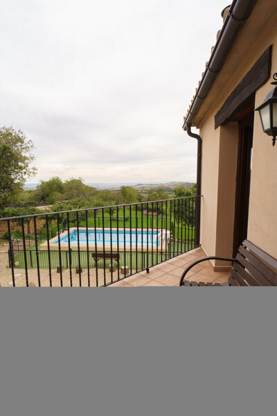 También se puede disfrutar de una bonita terraza con unas preciosas vistas a la piscina, al monte de Aniés y al castillo de Loarre.